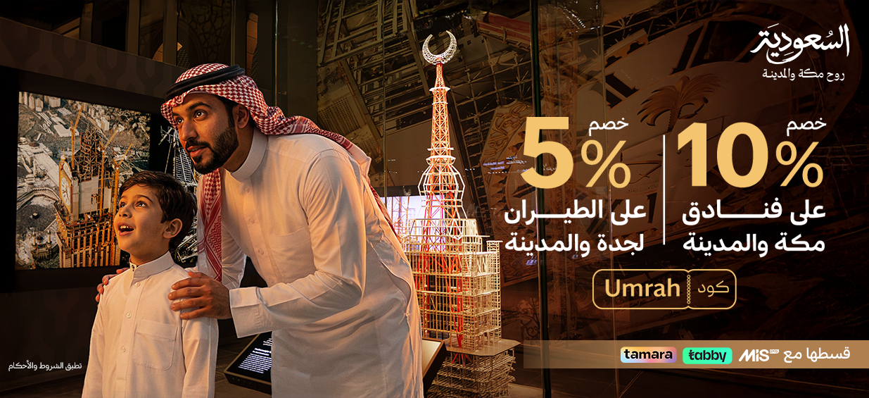 10% خصم مباشر على جميع فنادق مكه والمدينة المنورة باستخدام الكود: