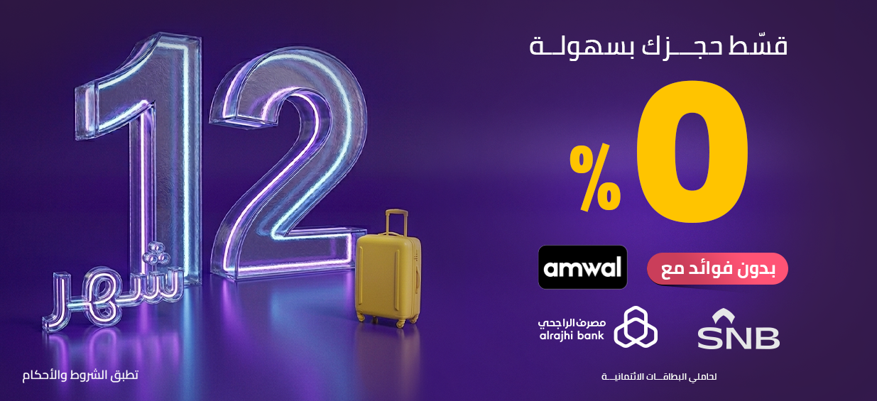 احجز فندقك أو تذكرتك وسدد حتى 12 دفعة بدون فوائد مع   Amwal